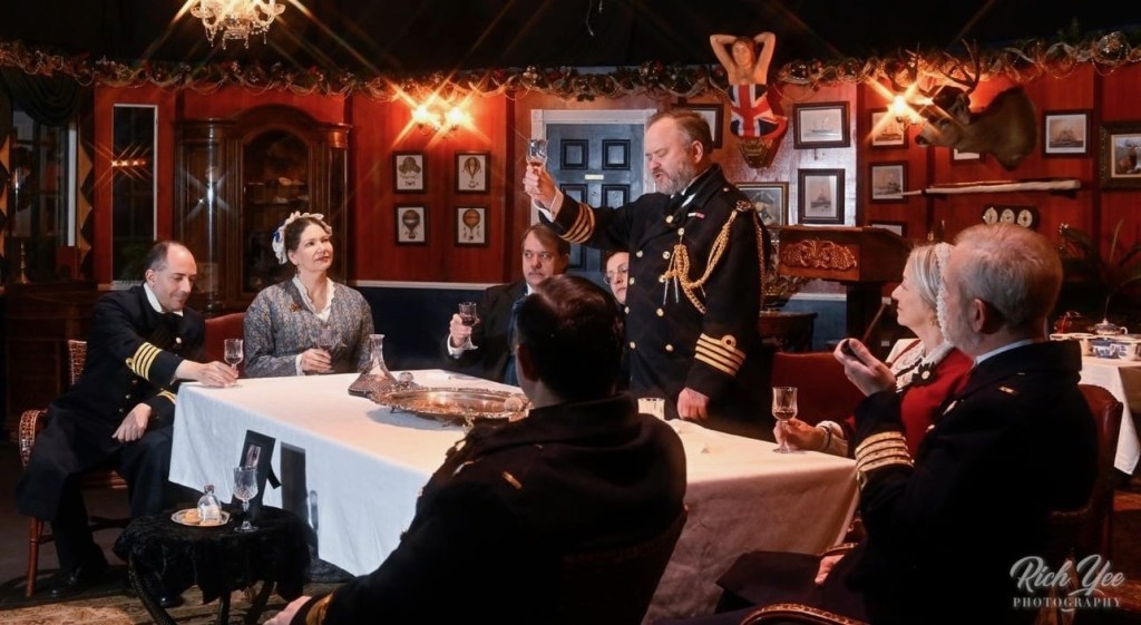 The words ring through the club, simple and steadfast, carried by voices that know duty, sacrifice, and the unbreakable bond of the sea. Toasts are drunk, no flourish, no excess, only the quiet dignity of men who have faced storm and silence alike under the same flag. As tradition unfolds, the toasts reflect our society, the Royal Navy, and the holiday season. Toasts may be fun or serious. Laughter is common and guests are always welcome.